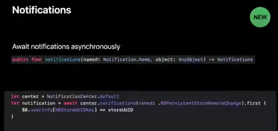 let notification = await center.notifications(named: .NSPersistentStoreRemoteChange).first {